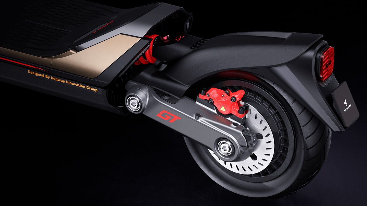 Ninebot GT2 оснащён полным приводом – спереди и сзади установлено по мотор-колесу с воздушным охлаждением, мощностью в 3000 Вт каждое.